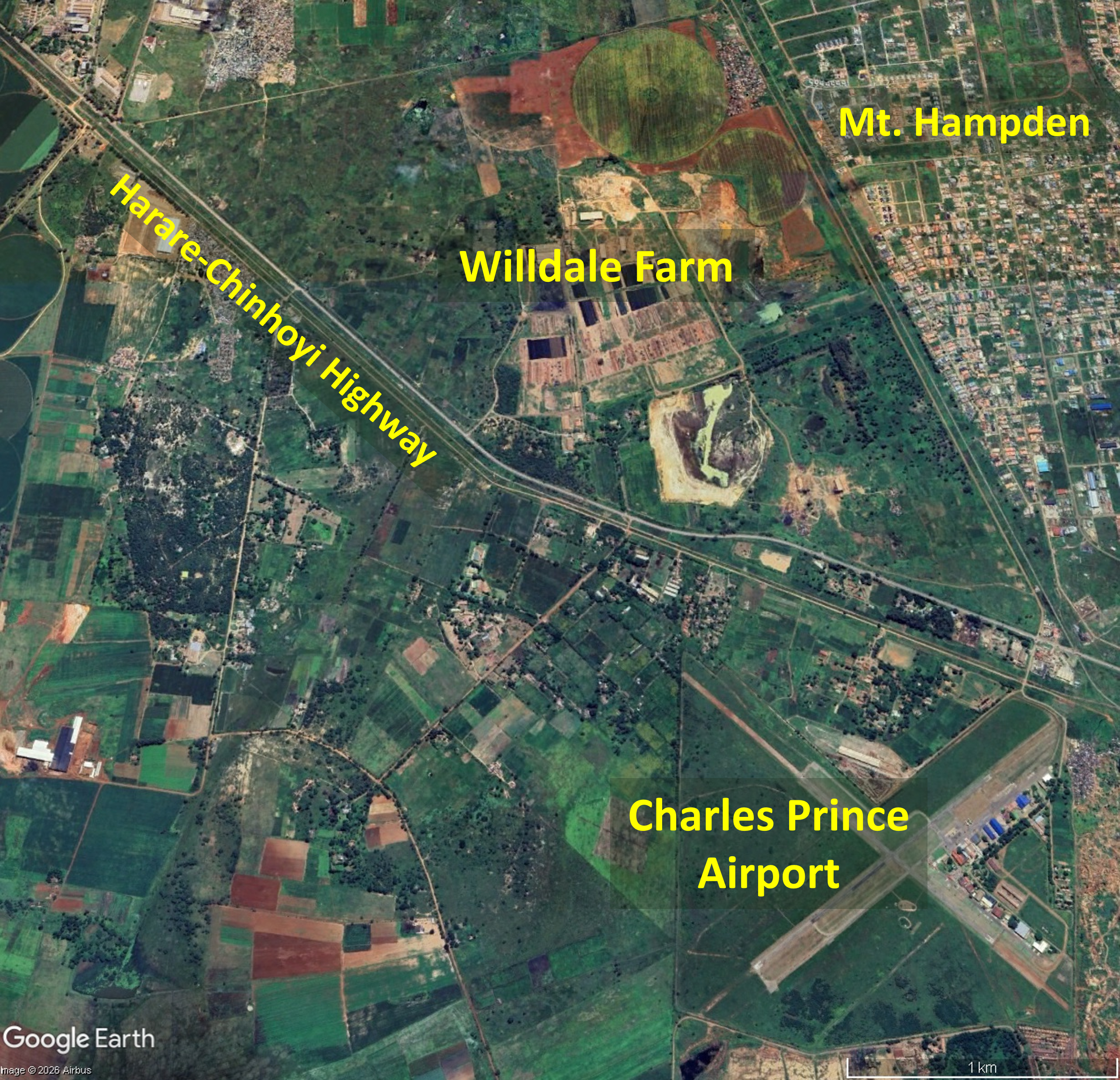 On 8th December Willdale announced that it had gained vacant possession of the 123.6314 hectares of land that had been occupied by third parties and the appointed contractor began mobilising equipment for construction of the project, an industrial park to support an emerging new city and expansion of Charles Prince Airport, located to the south of Willdale Farm and currently used by light aircraft and flights schools, into a regional hub for trade and commerce. An agreement for expansion and upgrade of Charles Prince Airport, was established between Zimbabwe and China during President Mnangagwa’s visit in 2024. Transport and Infrastructure Development Minister Felix Mhona highlighted the land and space for development around Charles Prince Airport, saying, “Once completed, the airport will serve as an international airport”, mentioning the airport’s proximity to the new Cyber City and new parliament building, located northeast of Willdale Farm. The Airports Company of Zimbabwe (ACZ) December 2025 announcement of airport infrastructure projects for the following five years highlighted upgrade of Charles Prince Airport, estimated to cost USD1 billion and supporting the government drive to establish new business and administrative hubs in the Mount Hampden area.